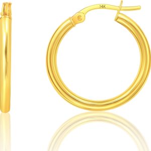 14k Gold Hoop Earrings for Women | Hypoallergenic Small to Large 12MM to 50MM Hoop Earrings with Secure Click Tops |14k Yellow or White Gold Classic Hoops in 2MM Thick Tube by MAX + STONE